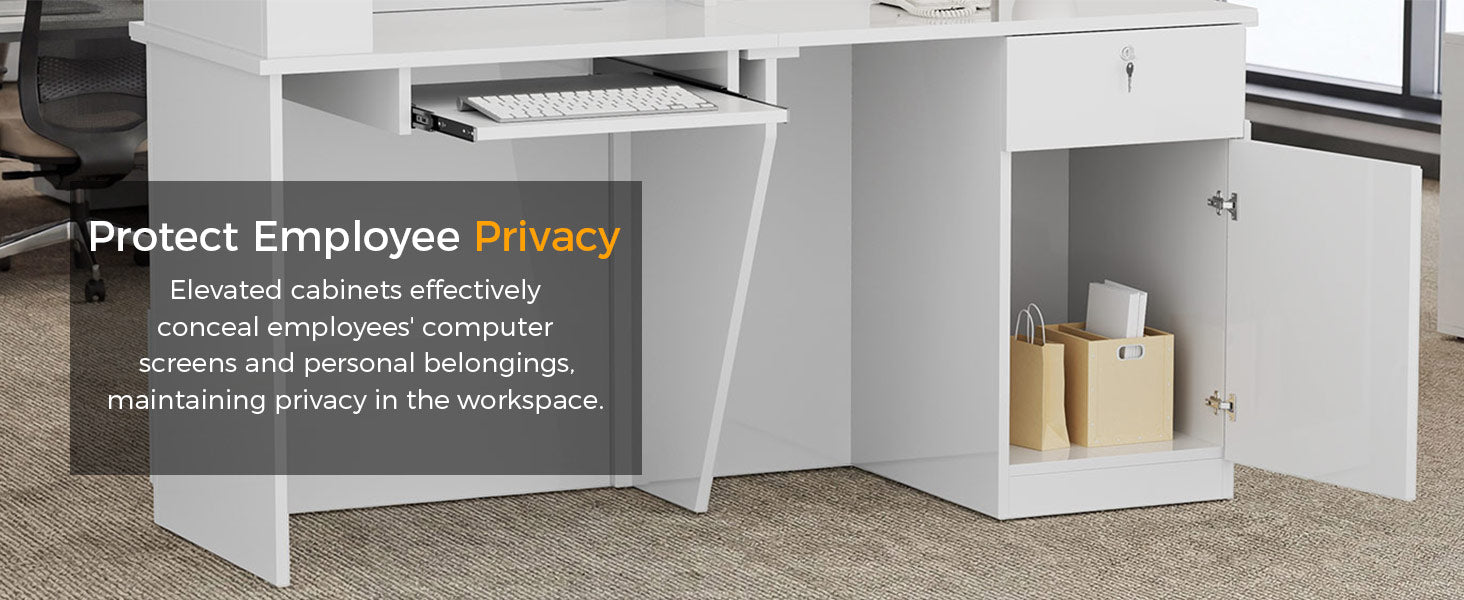 The orientation is determined from the perspective of the receptionist standing behind the desk. If you want the higher privacy counter to be on your left hand side, choose "Left Configuration."
