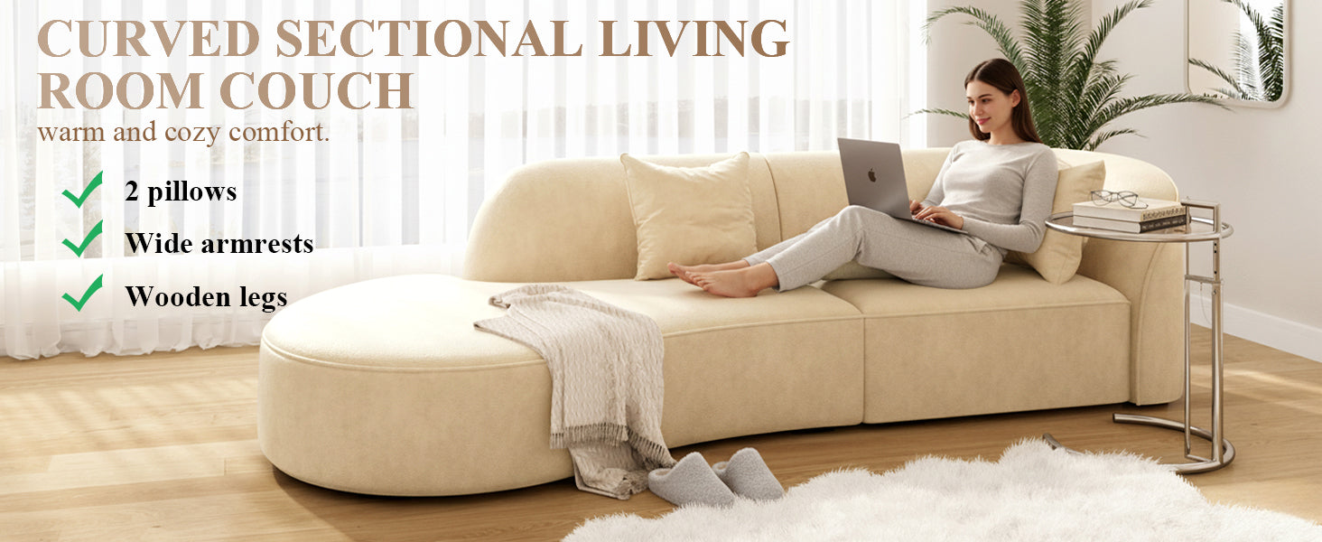 Nexomensa 134" Curved Sectional Sofa with Chaise Lounge